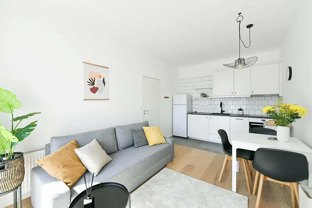 Dispozice: vstupní chodba s vestavěnými šatními skříněmi na míru, kde si pohodlně odložíte kabát a boty, obývací pokoj přímo propojen s kuchyňským koutem, kde najdete všechny potřebné spotřebiče, sklokeramickou desku s digestoří, troubou, mikrovlnou troubou, kombinovanou lednici s mrazákem, myčku nádobí a dokonce i pračku, je tu jídelní stůl s židlemi a rozkládací sedačka a také vstup na příjemný balkón, dále ložnice s manželskou postelí a šatní skříní, koupelna se sprchovým koutem, toaletou a umyvadlem. Byt je po kompletní a velmi zdařilé rekonstrukci (v roce 2022) a všude byly použity moderní nadčasové a kvalitní materiály. Celý byt je velmi pěkně a vkusně zařízen včetně doplňků.