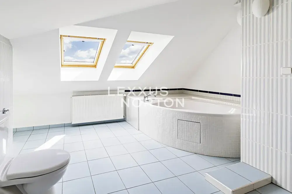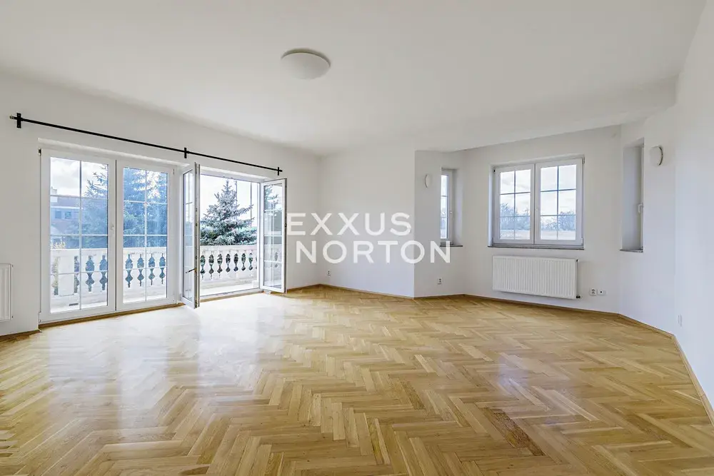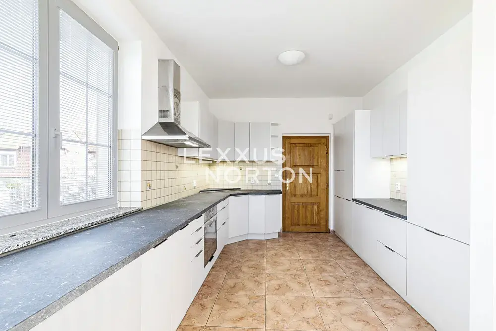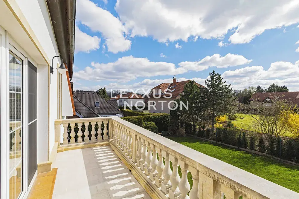 Prémiová nezařízená vila 7+1 k pronájmu disponuje užitnou plochou o velikosti 610 m2. V 1. nadzemním podlaží vily nabízí vstupní chodbu, prostornou halu, obývací pokoj s krbem a francouzskými okny vedoucí na terasu a do zahrady, novou plně vybavenou kuchyň s jídelním pultem, jídelnu, ložnici pro hosty s přístupem na zahradu a vlastní koupelnou. Ve 2. nadzemním podlaží se nachází velká hala/galerie, 4 ložnice - jedna se vstupem na terasu, vlastní koupelna, samostatná koupelna a technická místnost. Ve 3. nadzemním podlaží je umístěna podkrovní galerie, ložnice a koupelna. K dispozici je garáž pro dvě vozidla s možnosti dalšího parkovacího stání na pozemku.