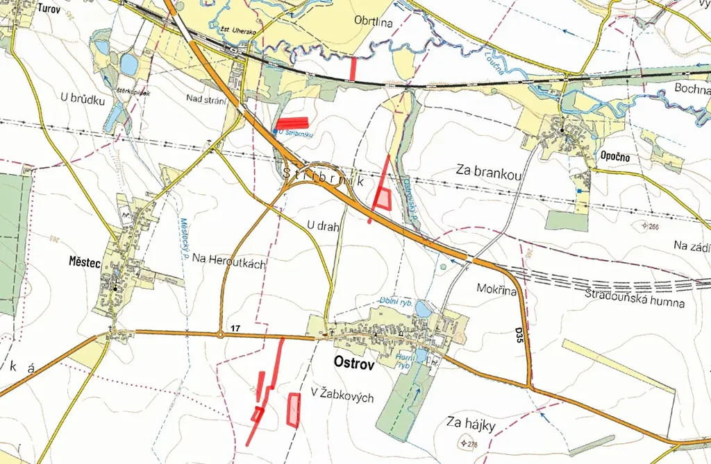V katastrálním území Ostrov, okres Chrudim, nabízím k prodeji soubor pozemků: