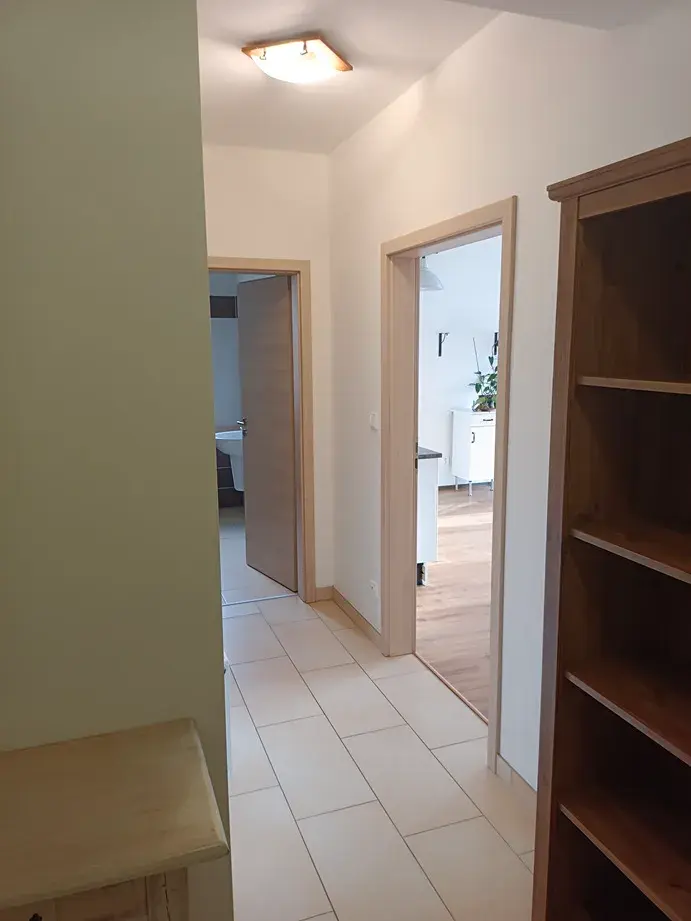 Nabízíme k pronájmu částečně vybavený byt s dispozicí 1+kk o podlahové ploše 45,57 m2. Vybavení bytu: Kuchyňská linka, jídelní stůl, indukční deska, digestoř, myčka na nádobí,, lednice s mrazákem. Na podlahách dlažba a PVC. Koupelna s rohovou vanou a pračkou, toaleta samostatně. Byt se nachází ve 2.NP novostavby třípodlažního bytového domu s výtahem. Je světlý a slunný s balkónem orientovaným na jihozápadní stranu (6,15 m2 ), sklepní kójí (1,52 m2 ) a parkovacím stáním ve společných garážích domu. Byt je možno pronajmout bez garážového stání. Výhodou tohoto bytového domu kromě malého počtu bytů v objektu a klidného prostředí je hlavně tepelné čerpadlo, které zajišťuje úsporné vytápění a ohřev vody pro obyvatele domu. Kauce ve výši jednoho nájmu, odměna RK též ve výši jednoho nájmu. Možnost nastěhování od 1.4.2026. Jedná se o lokalitu s dobrou dostupností a občanskou vybaveností vázanou na městské části Řepy a Zličín.