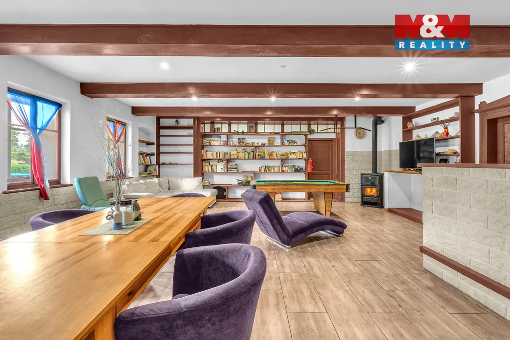 Nabízíme k prodeji soubor rodinných domů v obci Mostek, část obce Souvrať. Tato unikátní nemovitost se nachází na okraji obce a pyšní se nádherným prostranstvím, které zajišťuje dostatek soukromí i prostoru pro relaxaci. Je vhodná ke spojení rodinného bydlení s podnikáním. Nemovitost má celkem 9 prostorných místností s užitnou plochou 344 m². Dominantou domu je obývací pokoj s velkorysými rozměry s krbem a podlahovým vytápěním. Vytápění je dále zajištěno zplynovacím kotlem na dřevo. Sousední bývalý taneční sál nabízí nekonečné možnosti přizpůsobení ať už k dalšímu bydlení, nebo ke komerčnímu využití lehká výroba, sklad nebo dílna. V domě se nachází hezký pískovcový sklep. Celková plocha pozemku činí 4173 m², což zaručuje dostatek prostoru pro odpočinek, nebo kreativní využití podle vašich představ. Nemovitost je ihned k nastěhování. Okolí nabízí turistické a cyklistické trasy, v zimě je možné využít nedaleké lyžařské areály. Doporučuji prohlídku.