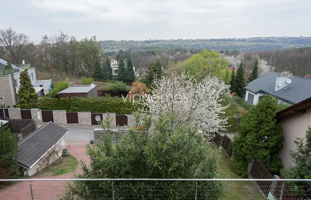 Prostorná vila s bazénem, saunou a krásnou vzrostlou zahradou, situována v klidné rezidenční lokalitě, v blízkosti golfového hřiště a dalších možností aktivního sportovního vyžití. Rychlé spojení do centra (10 minut k nákupnímu centru a stanici metra Anděl), výborná dostupnost do francouzského lycea a německé školy v Jinonicích. Nejrychlejší výjezd za Prahu zajistí Rozvadovská spojka s napojením na E50. Autem je možné se pohodlně dostat i na mezinárodní letiště Václava Havla Ruzyně.