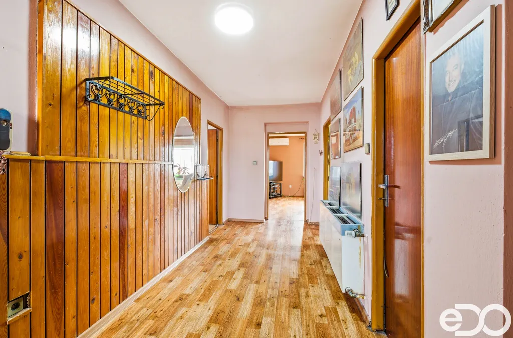 Dům je rozdělen na dvě samostatná patra o dispozici 3+1, kdy první patro nabízí přibližně 94 m² a druhé patro navíc s terasou. Každá jednotka disponuje prostorným obývacím pokojem, samostatnou kuchyní, ložnicí, (dětským) pokojem, koupelnou, odděleným WC i praktickými úložnými prostory v podobě komory a spíže. Dům je napojen na plynové vytápění, rozvody vody byly v posledních letech modernizovány do plastu, elektřina je vedena v mědi. Okna i střecha prošly postupnou obnovou, což přispívá k celkově udržovanému stavu nemovitosti. Součástí je také studna s užitkovou vodou a retenční nádrž, což ocení zejména milovníci zahrady.