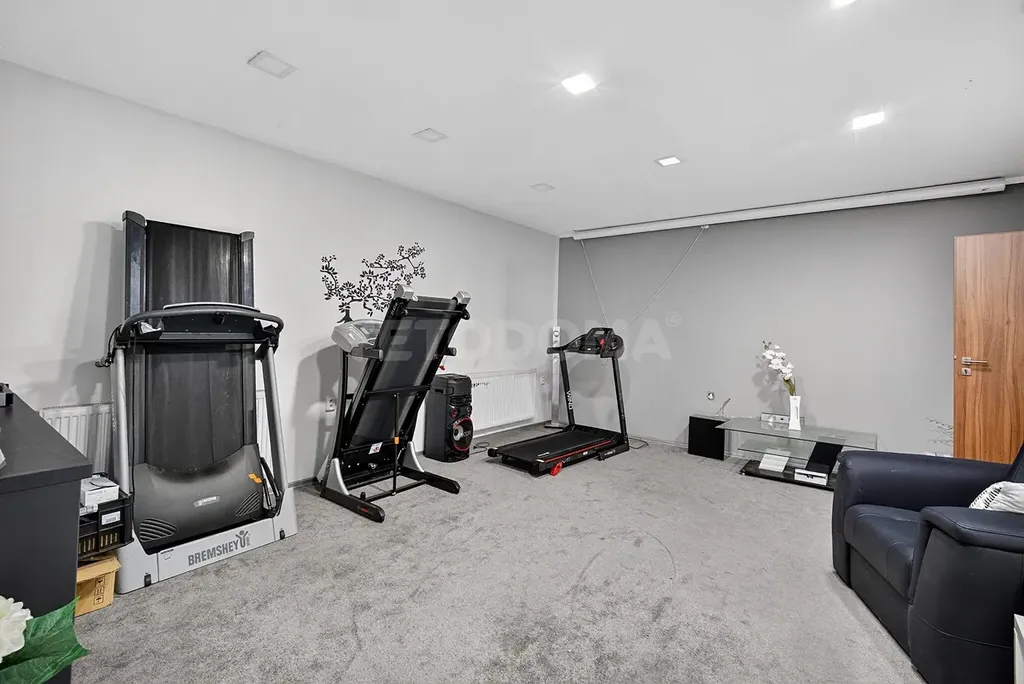 • Společenská místnost: využívaná jako fitness studio s promítacím plátnem.