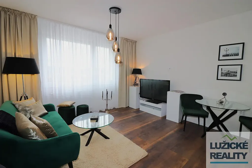 Byt je kompletně nově zrekonstruovaný a designově sladěně zařízený. Interiér působí útulně a moderně - nábytek, dekorace i obrazy jsou pečlivě vybrány, tak aby spolu ladily do harmonického celku.