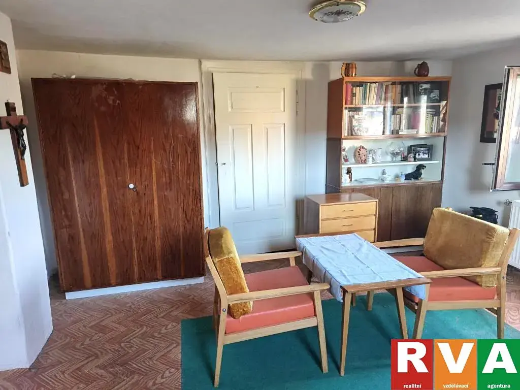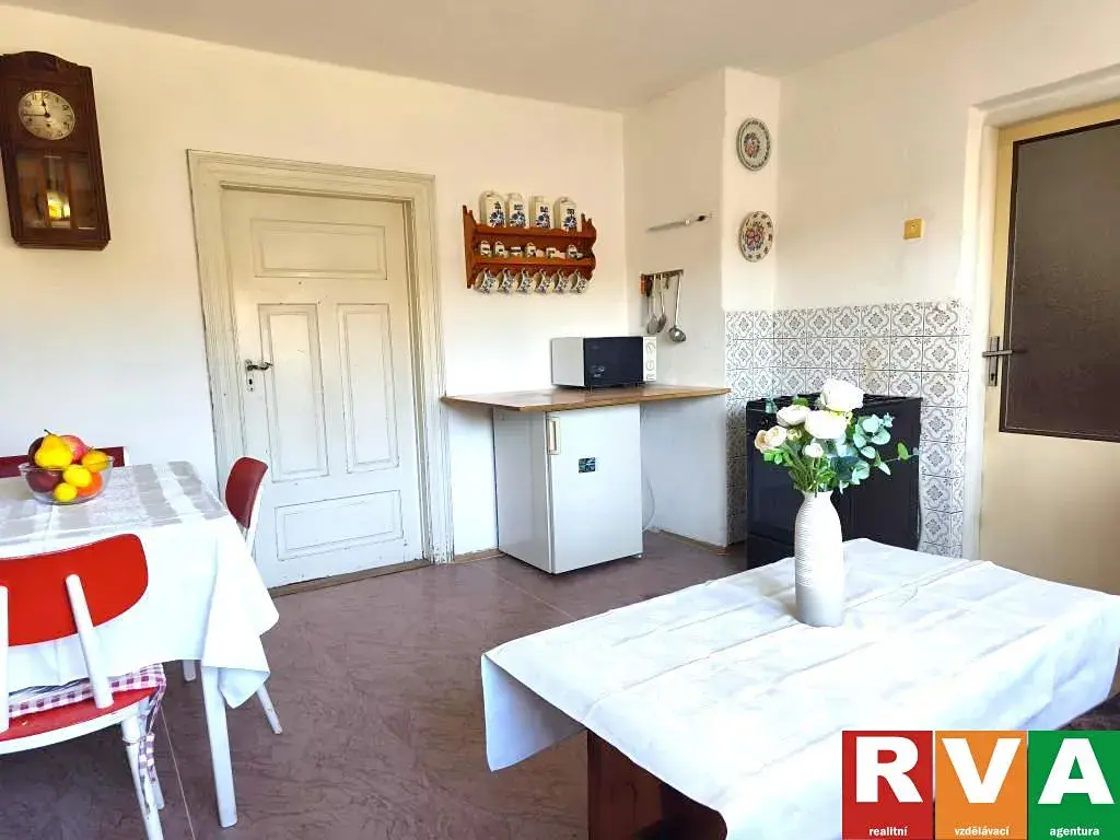 Zdánlivě malý domek je dostatečně velký i pro rodinné bydlení. Chodba v přízemí a schodiště do podkroví rozděluje dům na dvě téměř stejné části. V přízemí je obytná kuchyně, obývací pokoj (každá místnost má výměru cca 16,50 m2), malý pokoj (8,40 m2) a koupelna s toaletou (8,40 m2). Dále se chodbou dostanete ke schodům do sklepa, skladu, dílně a garáži. Na severní straně je pak k domu přistavěna ještě zděná kolna přístupná ze zahrady. Obě poloviny podkroví jsou identické - na každé straně chodby je jeden pokoj (každý cca 21 m2), z pokojů je vstup do podkrovních prostor ( každý cca 6,5 m2), které mohou sloužit např. jako šatny.