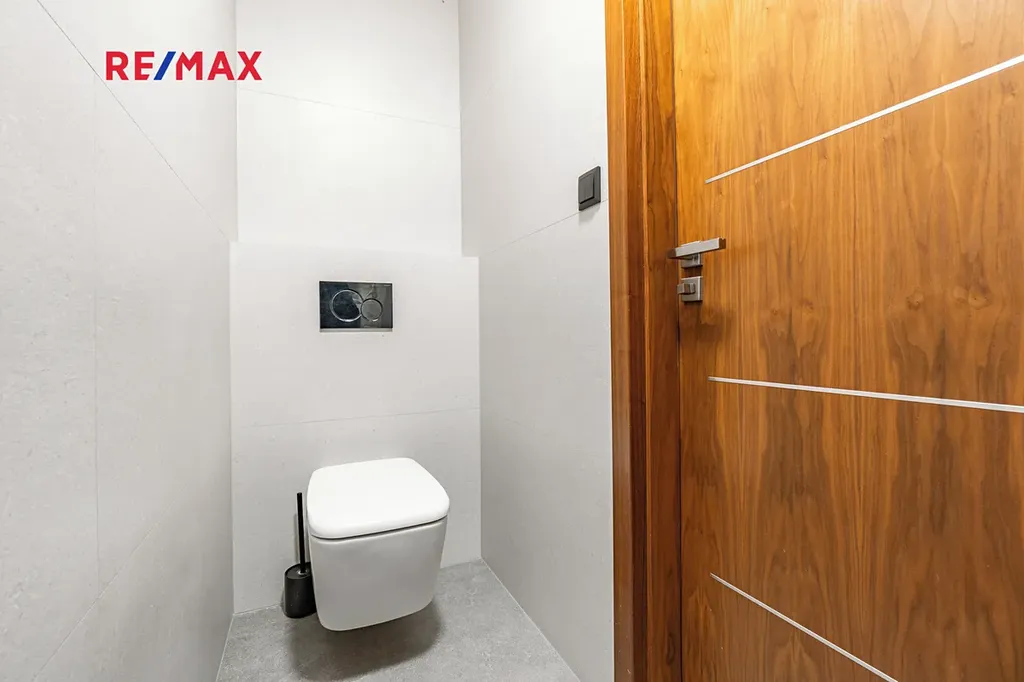 Součástí tohoto podlaží je také samostatný pokoj, koupelna a WC. Obojí prošlo kompletní rekonstrukcí na konci roku 2025, stejně jako vstupní chodba.