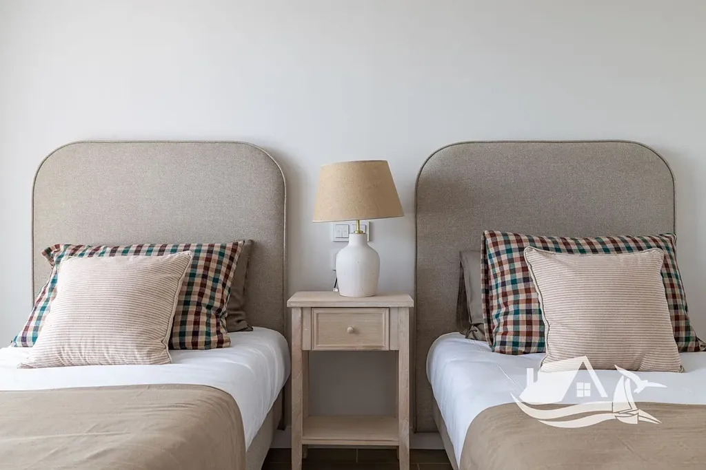 Interiér je navržen s důrazem na kvalitu a detail. Podlahy z porcelánové kameniny dodávají prostoru elegantní a nadčasový vzhled, zatímco vestavěné skříně zajišťují dostatek úložného prostoru. Moderní kuchyně je plně vybavená spotřebiči a přirozeně propojená s obytným prostorem. Elektrické rolety a kvalitní hliníková okna přispívají k vyššímu komfortu bydlení. O příjemné klima během celého roku se stará aerotermální systém vytápění a tepelné čerpadlo. Součástí je také příprava pro nabíjení elektromobilu.