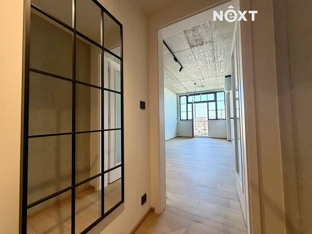 Lofty Kolbenova nabízí k pronájmu moderní byt 1+kk o celkové ploše 37,7 m2, podlahové ploše 33,2 m² a prostorným balkonem 4,5 m², situovaný v 5. nadzemním podlaží v jedinečné rezidenci vzniklé přestavbou bývalé tovární budovy (Masák & Partner) s nadčasovým designem.