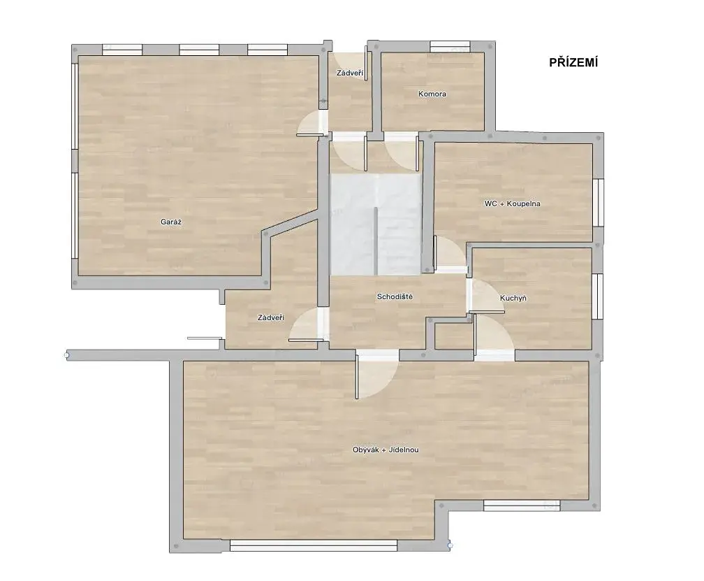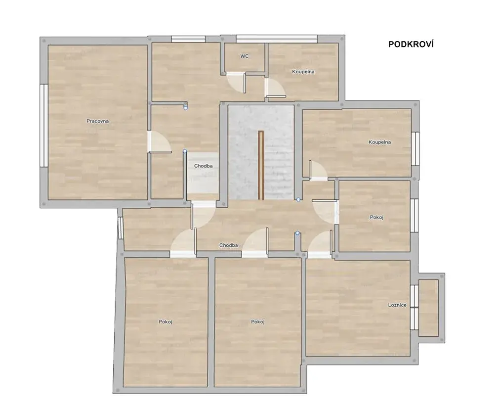 Velkým benefitem domu je také rozsáhlý suterén se šesti místnostmi, který poskytuje široké možnosti využití – od hobby prostoru až po pracovní zázemí.