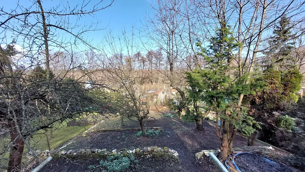 Zahrada je osázena krásnými, vzrostlými a plodícími stromy a keři. Můžete se těšit na vlastní úrodu jablek, meruněk, třešní, lískových oříšků i rybízu. Místo nabízí dostatek prostoru jak pro pěstování, tak pro odpočinek s rodinou či přáteli.