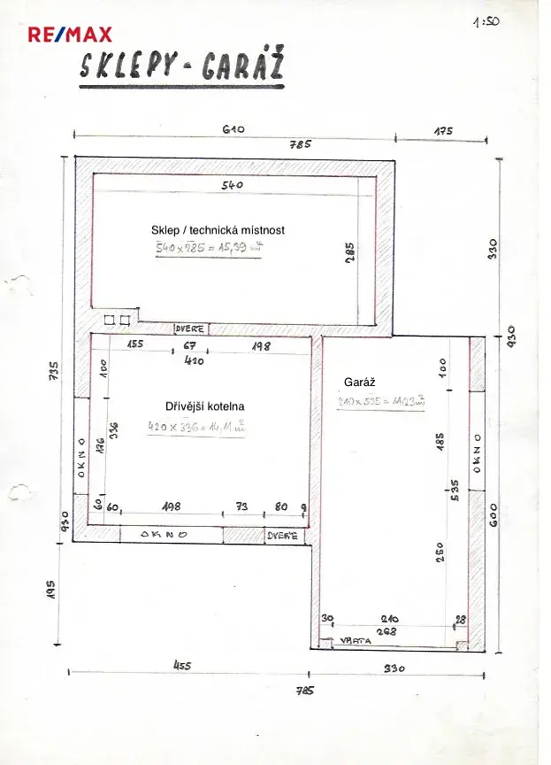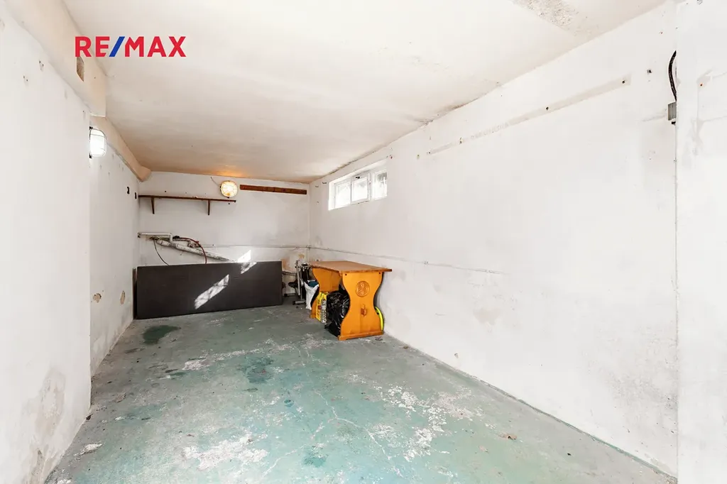 Pod terasou je k dispozici garáž a další místnost se samostatným vstupem (14 m²), původně kotelna, kterou lze snadno upravit na obytný prostor.