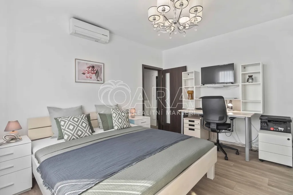Velká výhoda? Nemusíte řešit vůbec nic. Vše, co vidíte na fotografiích, v bytě zůstává. Včetně venkovního nábytku i grilu. Stačí si vzít osobní věci a bydlet. Byt se nachází v 6. nadzemním podlaží ze 7, s výhledem do otevřeného prostoru a dostatkem soukromí.