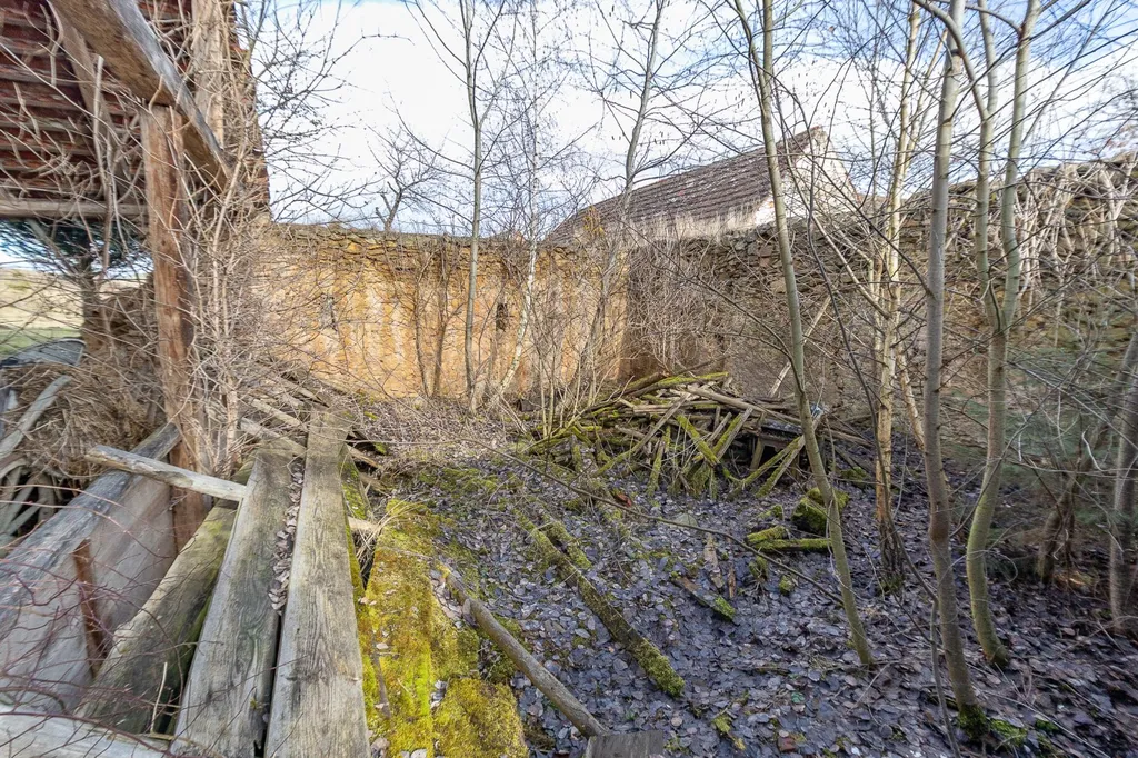 Dominantou uzavřeného dvora, který poskytuje naprosté soukromí, je velká, částečně otevřená stodola o zastavěné ploše 158 m². Tato unikátní stavba stojí na masivních zděných cihlových sloupech, které jí dodávají netradiční vzhled. Její horní dřevěná část historicky sloužila jako sklad sena a dnes nabízí obrovský prostor pro kreativní využití, od zahradního ateliéru až po velkorysé společenské zázemí. Obrovskou výhodou je přítomnost kvalitního stavebního materiálu přímo na pozemku – původní kámen a dřevěné trámy jsou připraveny k dalšímu využití, což stavbě dodá autenticitu a novému majiteli ušetří náklady.