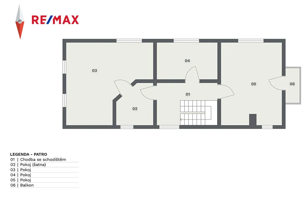 - patro: tři pokoje, šatna, chodba.