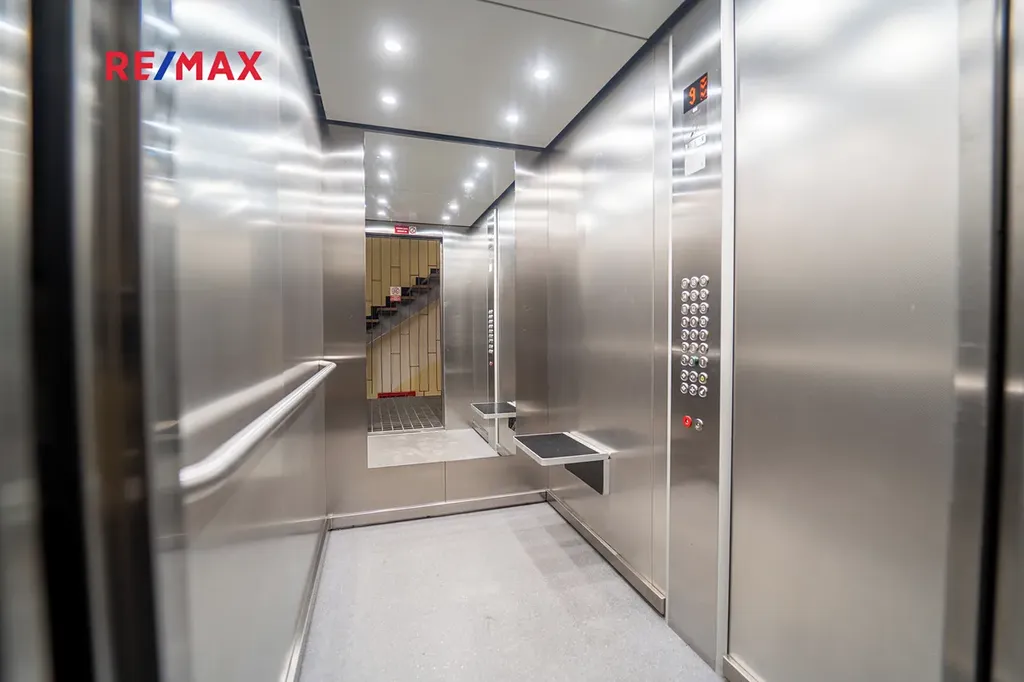 V domě jsou tři moderní výtahy, které zajišťují plynulý provoz bez čekání.