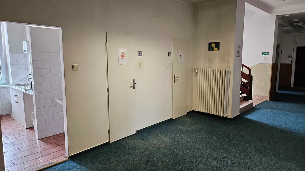 Nová okna s trojsklem a venkovními žaluziemi, zátěžový koberec, příprava pro připojení internetu.