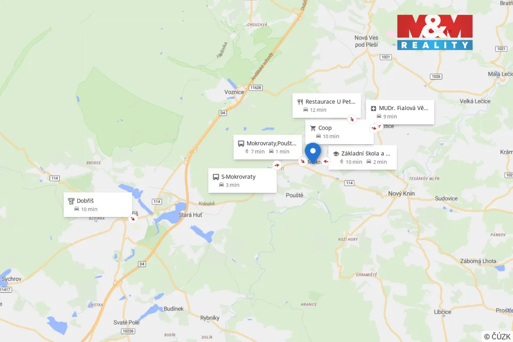 Prodej souboru 5 pozemků k bydlení v katastrálním území Mokrovraty nedaleko Dobříše. Celková plocha 4 449 m², situováno v klidné části obce. Pozemky ve velmi dobrém stavu, připraveny k dokončení – zbývá provést vybudování příjezdové cesty. Inženýrské sítě jsou v procesu projektování. Vhodné pro individuální výstavbu nebo jako investice. Pro více informací a domluvení prohlídky kontaktujte RK.