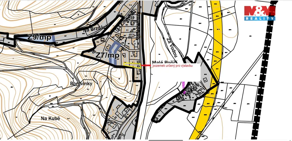 Nabízíme k prodeji atraktivní stavební pozemek o rozloze 796 m² v centru obce Malé Poříčí. Pozemek je ideální pro výstavbu rodinného bydlení, nachází se v prolukách stávající zástavby a nabízí výbornou dopravní dostupnost díky plánovanému obchvatu na Hronov. Přední část pozemku s garáží je ideální pro výstavbu, zatímco zbytek pozemku ve svahu poskytuje soukromí a možnost kreativního zahradního řešení. Na pozemek je přiveden elektrický proud, kanalizace a přípojka vody jsou na hranici pozemku. Výškové a objemové řešení staveb musí respektovat charakter okolní zástavby. Výjimečná příležitost pro ty, kteří hledají klidné bydlení s dobrou dopravní dostupností.