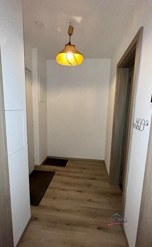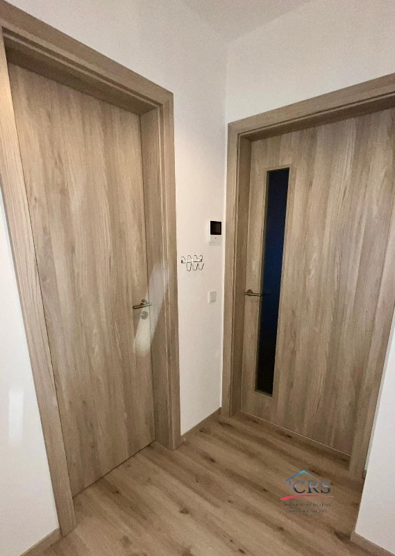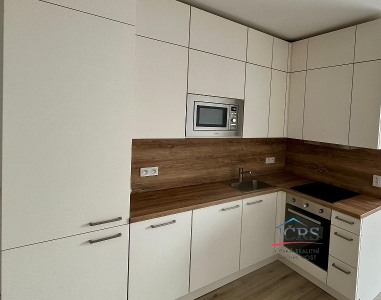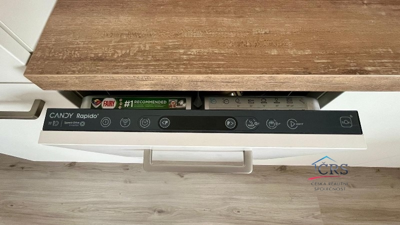 Nová kuchyňská linka se sklokeramickou deskou, elektrickou troubou, mikrovlnou troubou,myčkou, lednicí a digestoří. Bezpečnostní vchdodové dveře.