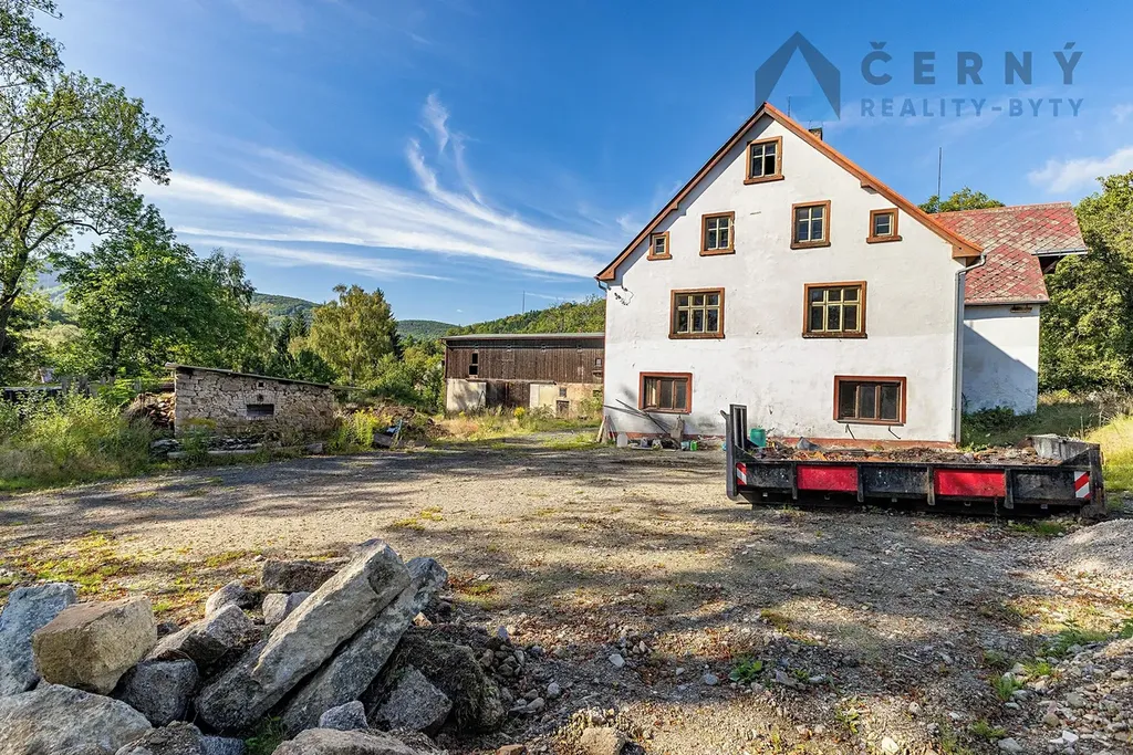 Část pozemku je porostlá stromy a travinami, ve střední, rovinaté části stojí dva objekty. Dvoupodlažní, podsklepený dům s obytným podkrovím a půdními prostory, jehož zastavěná plocha činí 275m2 a celková užitná cca 400m2. Dům sloužil původně jako obytný prostor, aktuálně jeho stav vyžaduje rekonstrukci. Druhým objektem je dřevěná hala - stodola se zděnou podezdívkou - zastavěná plocha 244m2. Hala je zčásti rozdělená do dvou pater, ve spodním je zděná garáž a dílna, horní patro bylo využíváno jako seník.