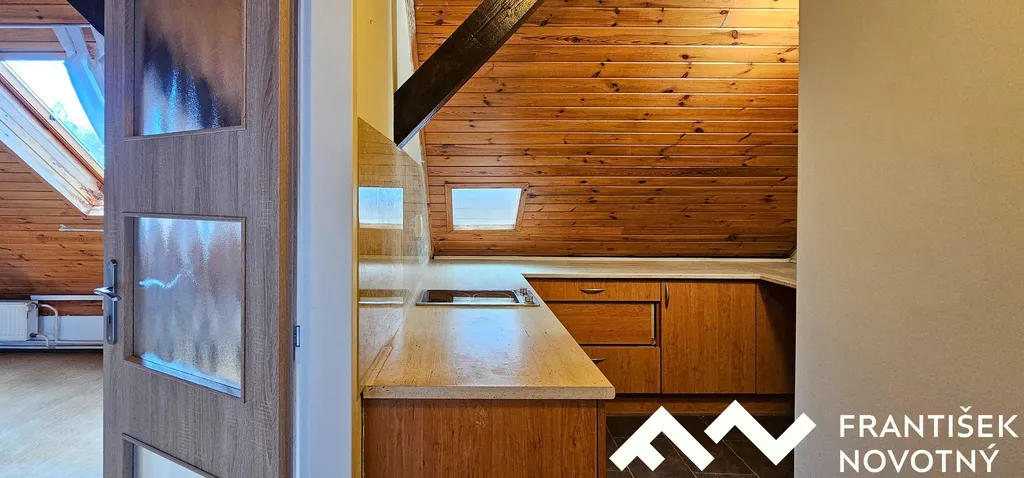 Jednotka byla rozsáhle rekonstruována – koupelna s WC zcela nová, ostatní prostory, vč. kuchyně renovované. Podkrovní řešení vytváří plnohodnotnou obyvatelnou jednotku s příjemnou atmosférou.