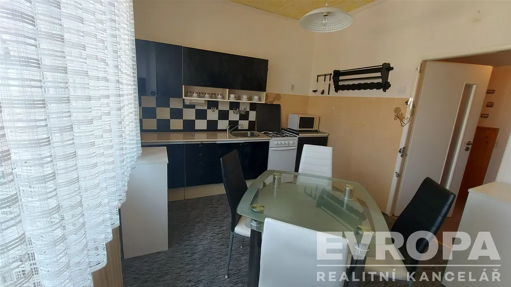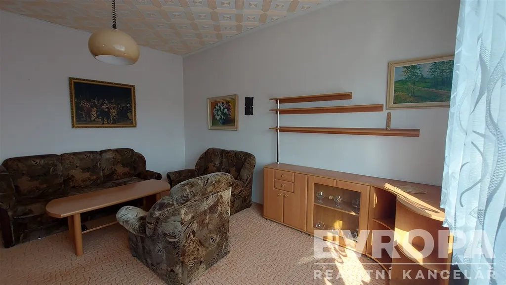 Do bytu vstupujete prostornou chodbou, ze které je vstup do komory, kuchyně, samostatného WC, koupelny a do obývacího pokoje. Za obývacím pokojem se potom nachází prostorná ložnice. V bytě je kompletní vybavení stačí přivést osobní věci. Dům samotný je po zdařené rekonstrukci, čistý a bezproblémový. Za domem je malinká zahrada. K bytu náleží malá sklepní kóje.