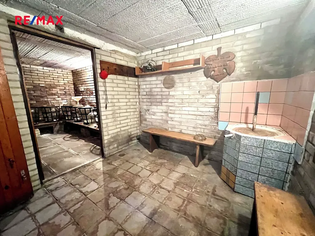 Dále je zde zděná garáž (18 m2), venkovní posezení a vinný sklep (18 m2).