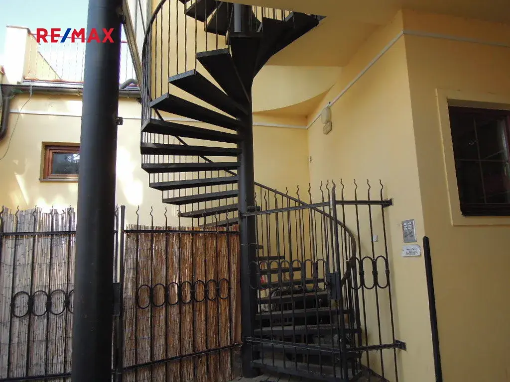 Kancelář se nachází v 1. patře budovy s přístupem po bezpečnostně uzamčeném kovovém točitém schodišti.