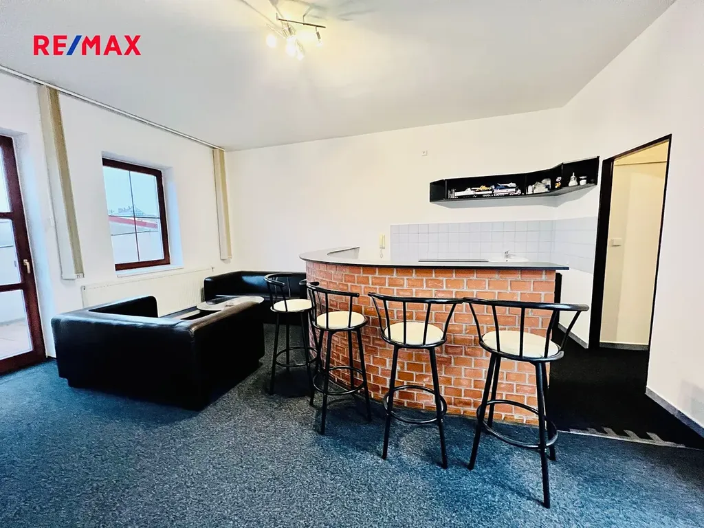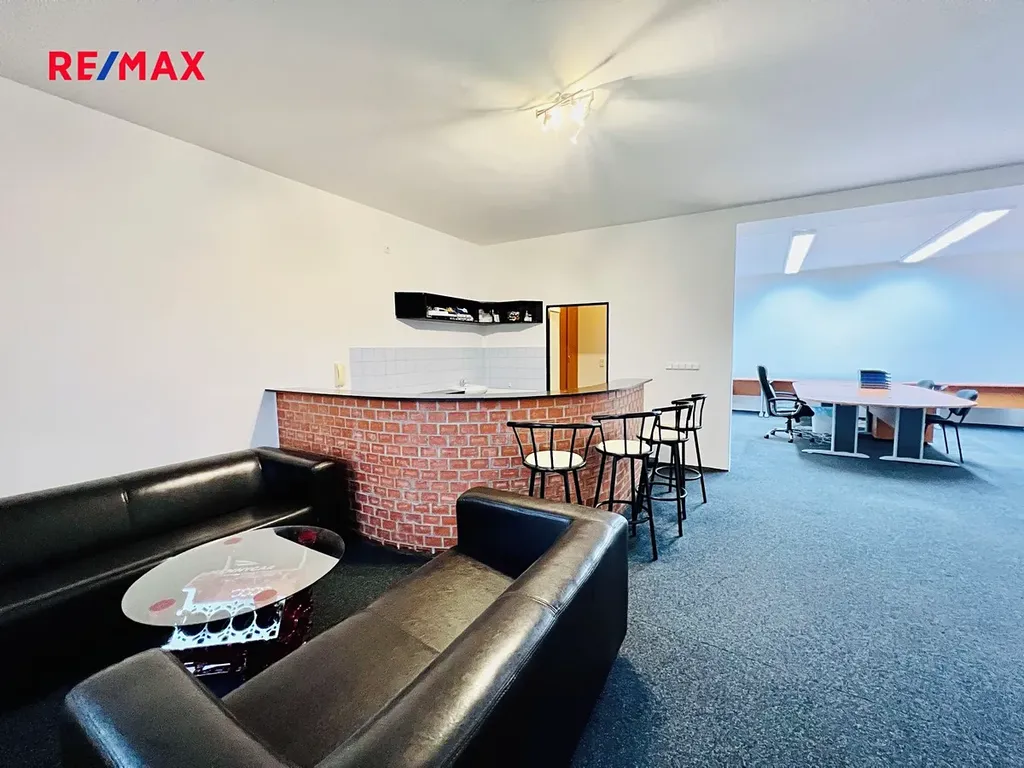 K dispozici je prostor o podlahové ploše 72 m2 : kancelářská část, společensko-obytná část s vystavěným pultem, za kterým je malá kuchyňka a barové posezení, sociální zařízení - sprcha, otopný žebřík, samostatná toaleta, bojler na ohřev teplé vody.
