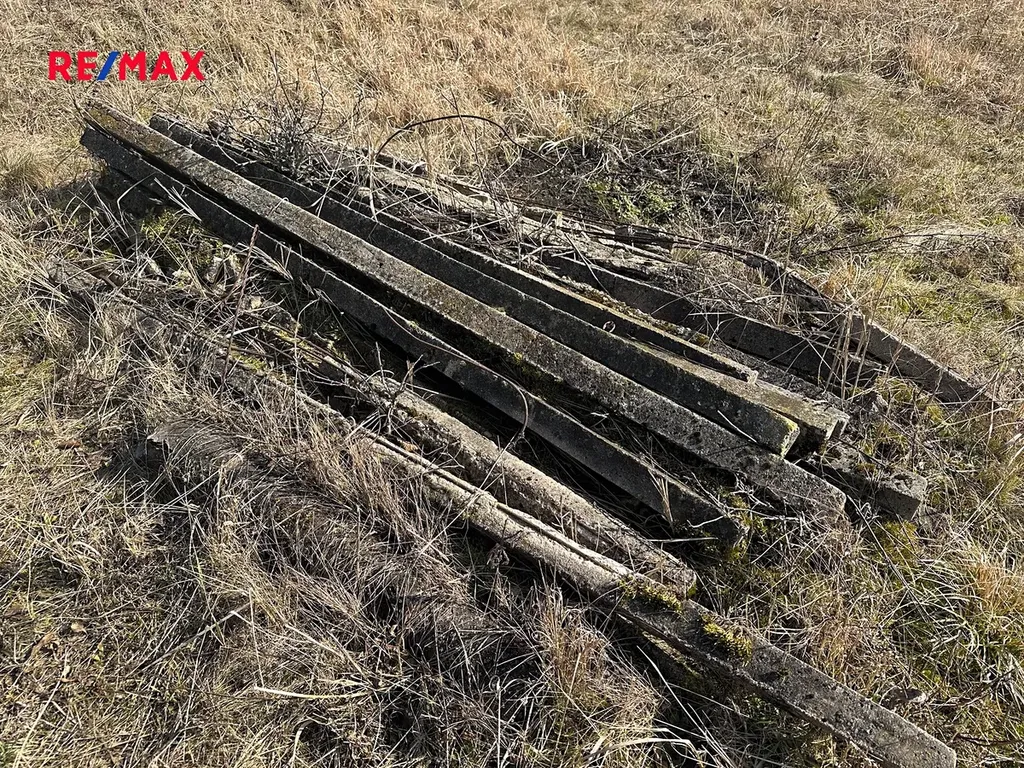 Nyní se na pozemku nachází pouze betonové sloupky, některé stojící, které by se daly případně využít k založení nové vinice.