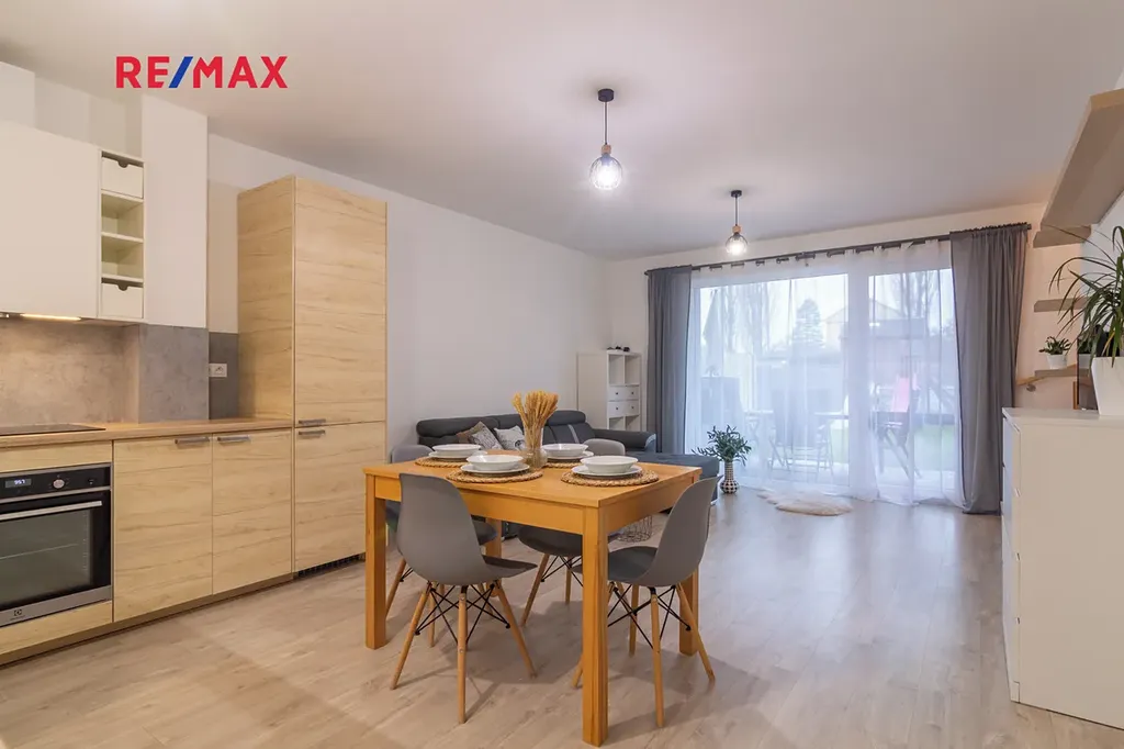 - obývací pokoj s kuchyňským koutem (30,15 m²) – s přímým vstupem na zahradu