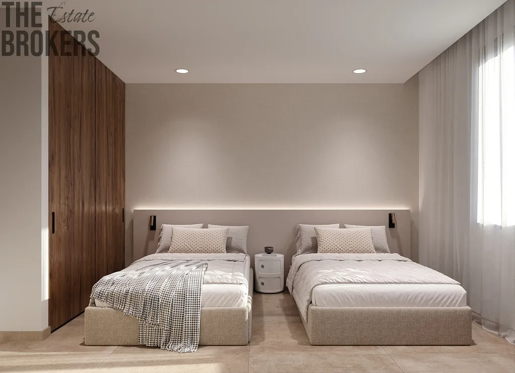 První patro: Dvě elegantní ložnice, každá s přímým vstupem na vlastní terasu.