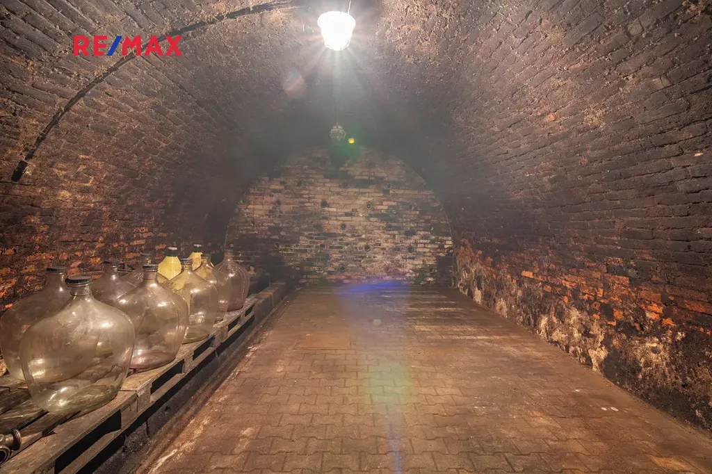 Nabízím ke koupi vinný sklep s pozemkem v okrajové části vinařské obce Brod nad Dyjí. Hlavním vstupem z ulice se dostaneme do lisovny o výměře cca 28,5 m2 s výškou stropu 3,4 m. Lisovna je zhruba 1,1 m pod úrovní vstupu. Přes šíji o rozměrech 4,8 x 1,5 m se dostaneme do samotného kvelbeného sklepa. Ten má výměru 35 m2 a v nejvyšším bodě měří 2,8 m. Celý sklep je v mírném svahu, takže nad spodní částí je cca 7 m zeminy.