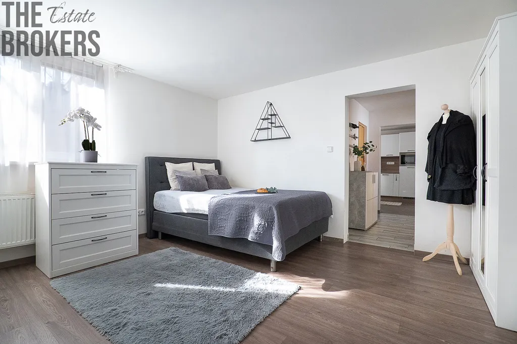 Jednotka 1+1 s vlastní koupelnou a přístupem přímo ze zahrady. Perfektní jako bydlení pro hosty, k pronájmu nebo například jako kancelář.