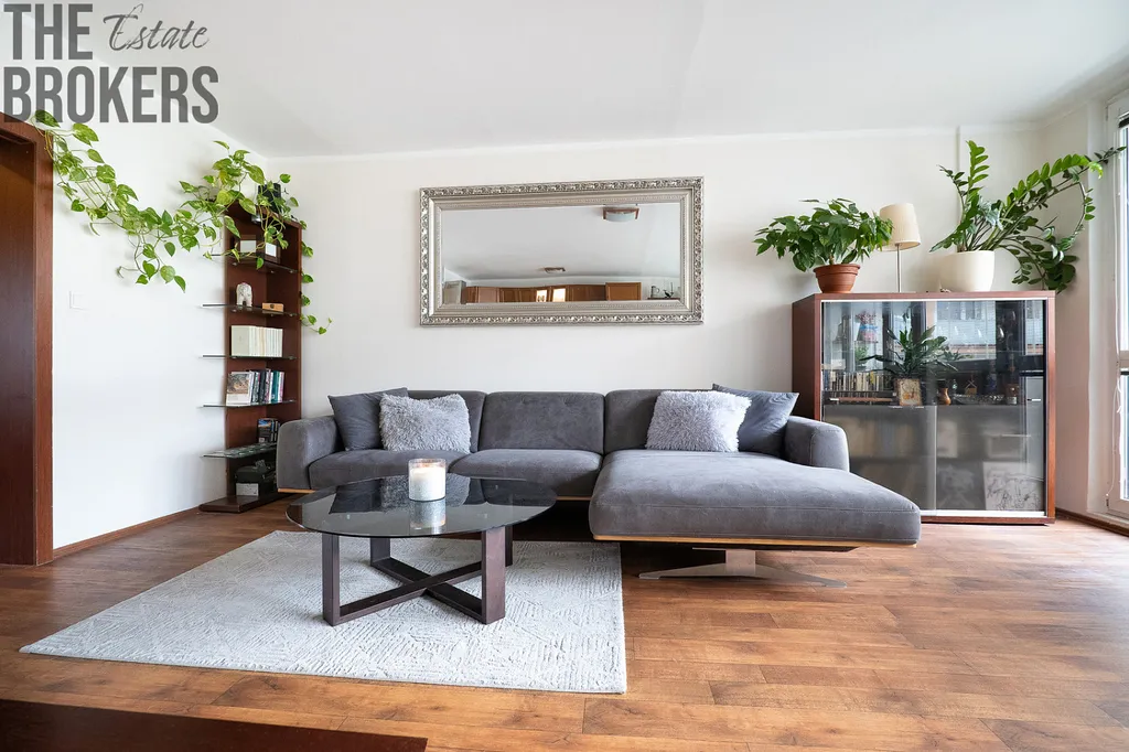 • prostorný obývací pokoj s kuchyňským koutem (31,58 m²) a vstupem na prosklenou lodžii (5,6 m²)