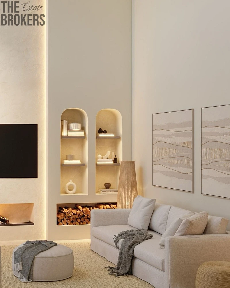 Teplé dřevo, strukturované povrchy a přírodní vlákna se zde snoubí s čistými architektonickými liniemi a vytvářejí domovy, které jsou zároveň elegantní i mimořádně komfortní.