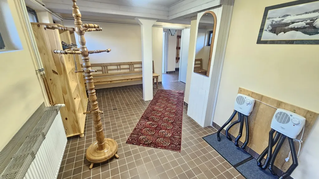 1. NP: vstupní část, lyžárna/kolárna, wellness (sauna), nová plně vybavená kuchyň a jídelna pro 22 osob, technické zázemí,