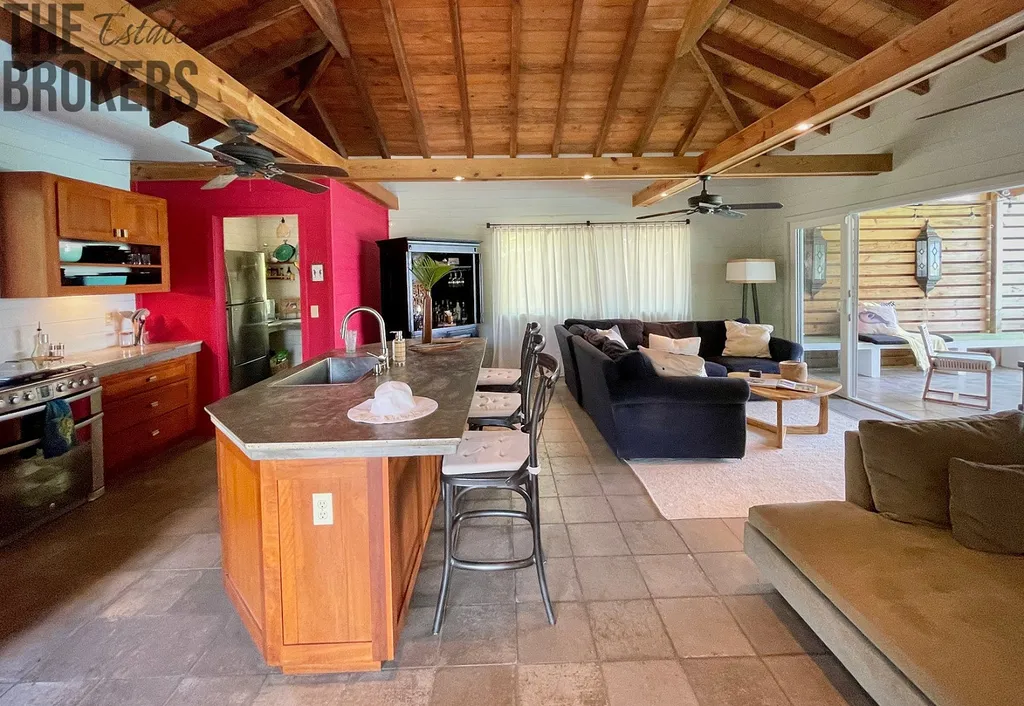 Camp Bay je opravdu zvláštní komunita nad vodou i pod vodou, podobných míst už na tomto světě moc nezbylo. Tato vila byla navržena renomovaným Roatanským architektem Halem Sorrentim, jehož jedinečné domy v ostrovním stylu můžete vidět po celém Roatanu. Dům poskytuje nádherný výhled nejen na pláž a oceán, ale také na horské úbočí a Port Royal National Forest, který nabízí to nejlepší z obou světů pro plážové povaleče a milovníky hor. Obrovské terasy jsou nejen skvělé pro nalezení soukromého místa na lenošení, ale jsou také perfektní pro zábavu se spoustou míst k sezení. Vnitřní obytné prostory i kuchyně mají přímý výhled na moře, takže i vaření přichází s výhledem. Hned vedle hlavní kuchyně je venkovní kuchyně s vestavěným plynovým grilem a dřezem. Dva prostorné obývací prostory jsou zařízeny moderním a super pohodlným nábytkem Crate and Barrel a West Elm. Hlavní ložnice má také posuvné skleněné dveře na terasu s výhledem na oceán, takže se můžete snadno dostat na terasu a nekonečný bazén, aniž byste museli projít hlavní částí domu. Hlavní koupelna krásně vykachličkovanou vnitřní sprchu s výhledem na moře a také venkovní sprchu hned za dveřmi koupelny na zadní terasu, kde se můžete sprchovat pod hvězdami.