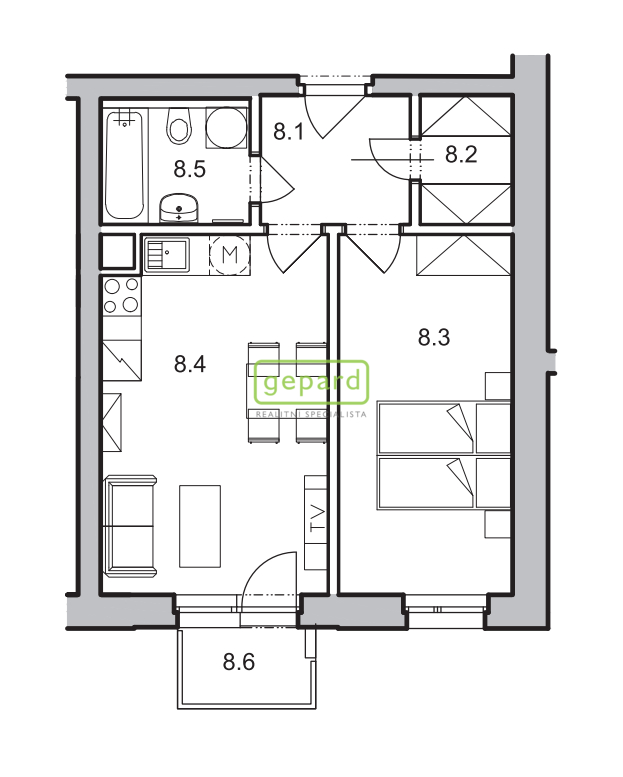 Jedná se o novostavbu z roku 2016. Byt se nachází v 2.NP s výtahem. Je orientovaný na jižní stranu s otevřeným výhledem. Výhodou jsou předokenní, hliníkové žaluzie v ložnici. Z předsíně jsou samostatné vstupy do obývacího pokoje s kuchyňským koutem, ložnice, koupelny společné s WC. Kuchyňská linka je vybavena sporákem a troubou. Vstup na balkon je z obývacího pokoje.