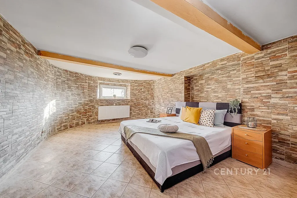 Velkou výhodou je plnohodnotný obytný suterén, který výrazně rozšiřuje možnosti využití – může zde vzniknout ložnice, dětské pokoje, pracovna, herna nebo fitness. Nachází se zde také technická místnost a druhá koupelna s WC. Prostor prošel izolací a je plně obyvatelný. Dispozici lze navíc upravit až na 6+kk podle potřeb budoucích majitelů.