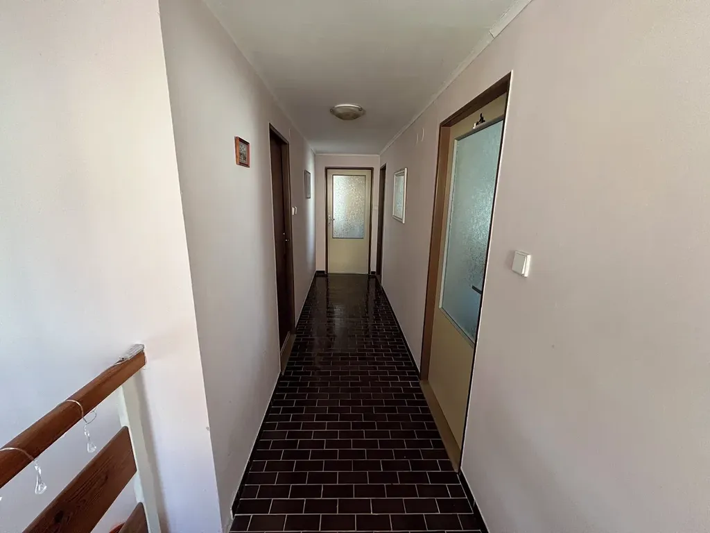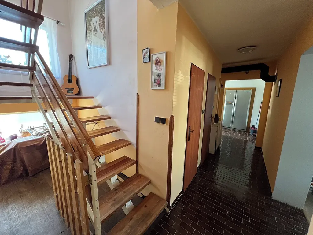 Jedná se o patrový rodinný dům o dispozici 4+1, s 2 koupelnami a 2 WC. V přízemí domu se nachází vstupní veranda, chodba, kuchyň, prostorný obývací pokoj s jídelnou, spíž s navazujícím skladovacím prostorem průchozím do garáže (25 m2), koupelna a samostatné WC. V prvním patře jsou 2 ložnice, pracovna a koupelna s WC.