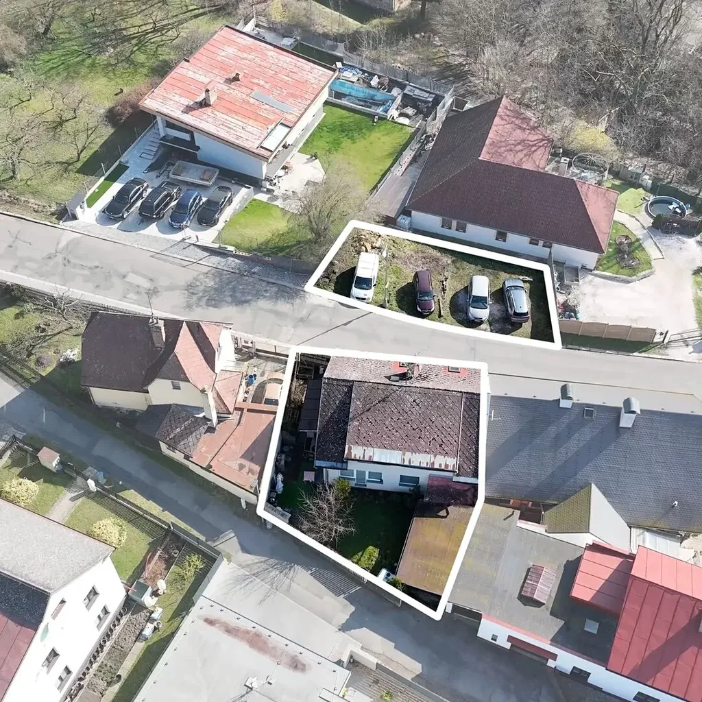 Zahrádka kolem domu je rovinatá. Parkování je možné na pozemku o velikosti 176 m2, který je součástí nabídky a nachází se přes klidnou silnici.