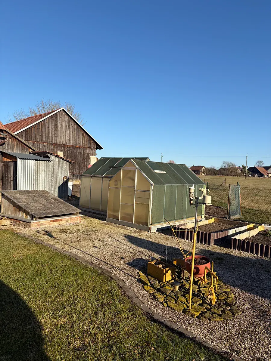 Jedná se o cihlovou přízemní stavbu o užitné ploše 79,6 m², která disponuje třemi pokoji, kuchyní chemické WC v domě a na dvoře pod střechou druhé. Ohřev vody zde zajišťuje elektrický bojler. Dům byl postaven kolem roku 1970 a v roce 2010 prošel rekonstrukcí, jakož výměna oken za plastová, podlahy a jiné malé úpravy, což zajišťuje jeho dobrý stav. Nabízí se zde i možnost přistavět v podkroví. Jedna investice Vás zde čeká a to je injektáž základů. V rámci pozemku o rozloze 1172 m² najdete také stodolu, která může sloužit jako prostor pro uskladnění nebo garáž pro minimálně dva automobily. Dále na pozemku najdete domácí udírnu, nádobu pro dešťovou vodu, velký skleník, výběžek pro slepičky a prostor pro dílnu nebo jiné aktivity. Zastavěná plocha je 173 m². Samozřejmostí je také zajištěné parkování přímo u domu.