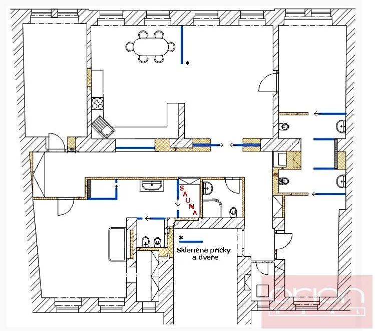 Nabízímje k pronájmu luxusní byt 5+kk ve 3. patře zrekonstruovaného domu s výtahem ve vyhledávané lokalitě Praha 5 - Smíchov. Částečně vybavený byt má celkovou plochu 181 m2 a nabízí vstupní halu, plně zařízenou kuchyň s jídelnou otevřenou do prostorného obývacího pokoje, 4 ložnice - z toho jedna s šatnou a koupelnou (sprchový kout, toaleta, bidet, sauna), 2 koupelny se sprchovým koutem a toaletou, pracovnu, technickou místnost s pračkou a sušičkou. Na podlahách jsou parkety a dlažba. K vybavení bytu patří klimatizace, vestavné skřžímě a zabezpečnostní systém. Dům se nachází v klidné ulici pouze pár kroků od tramvajové zastávky, pár minut ke stanci metra Anděl, nákupního centra Nový Smíchov. V pěší vzdálenosti je Francouzské lyceum a Petřínské sady.