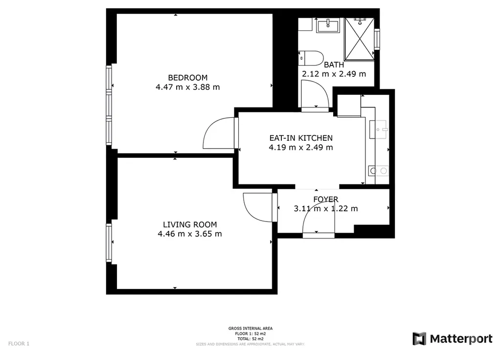 Dispozice: 2+1 (praktické rozdělení na kuchyni a dva samostatné pokoje).