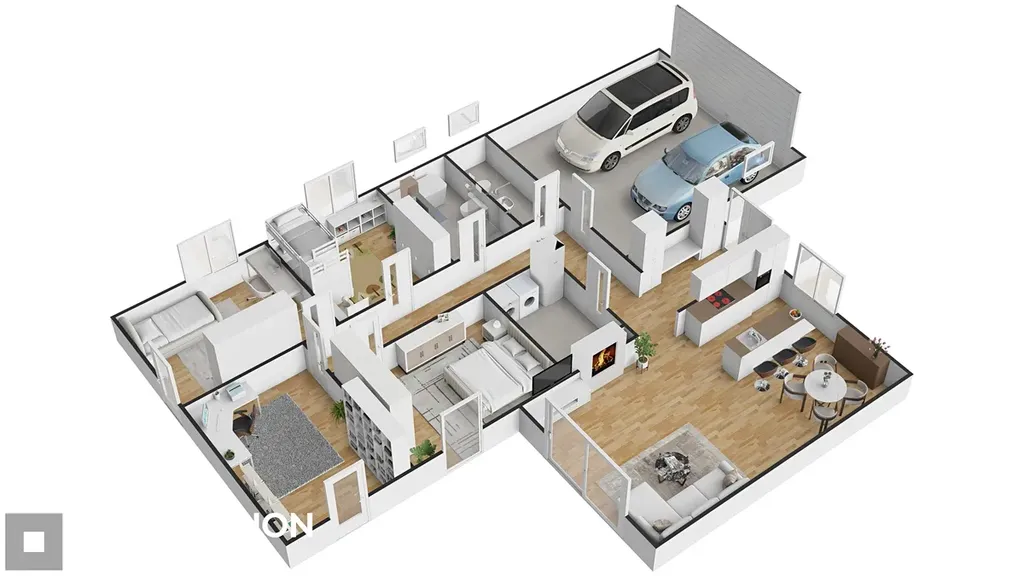 – prostorná dvojgaráž integrovaná do objektu