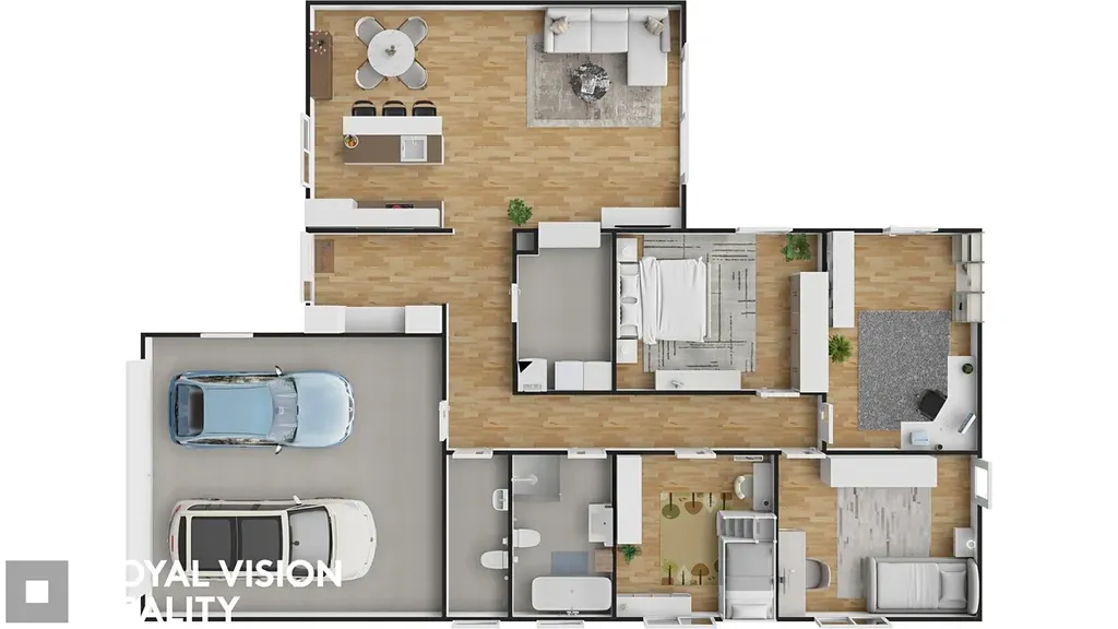 Čtyři samostatné pokoje poskytují dostatek soukromí pro rodiče i děti, případně možnost pracovny či fitness. Dům disponuje dvěma koupelnami (koupelna s toaletou, toaleta), technickou místností a přímým vstupem z domu do garáže, což výrazně zvyšuje komfort každodenního užívání.