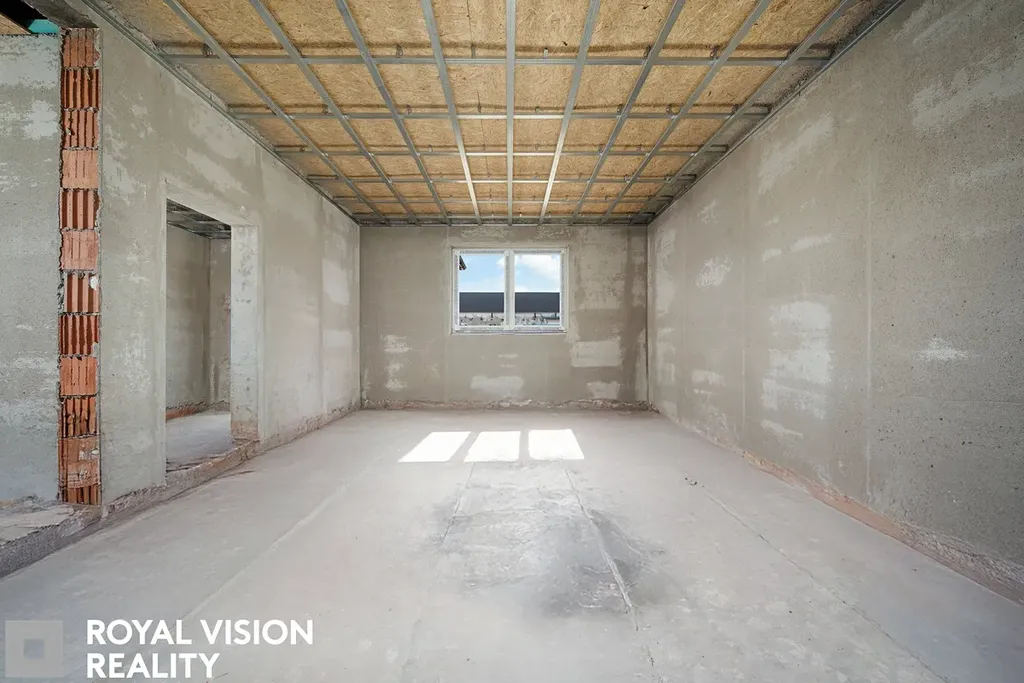 Dům bude dokončen ve stavu „k dokončení interiéru“ – tedy s hotovou koupelnou, osazenými okny, dveřmi, dokončenou střechou a podlahami. Finální úpravy interiéru si nový majitel může realizovat dle vlastního vkusu, což umožňuje vytvořit domov přesně podle individuálních představ.