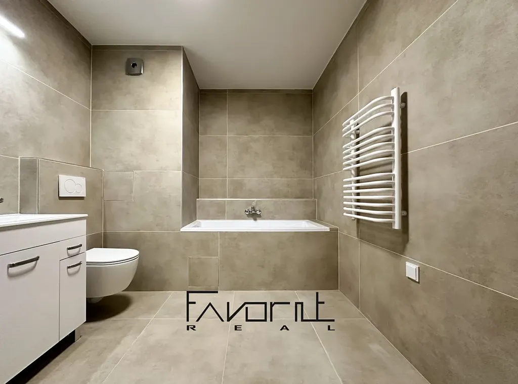 - velká zděná koupelna s vanou, místem pro pračku i sušičku, topným žebříkem a novou sanitou